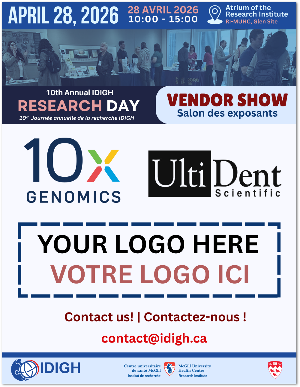 Our Research Day will also host an exciting vendor show open from 10:00 AM to 3:00 PM in the atrium of the RI-MUHC. This is more than just an exhibition; it’s a chance to discover cutting-edge technologies, innovative services, and the organizations that are actively supporting our research endeavors. We sincerely encourage all attendees to make a point of visiting the booths of our generous sponsors. Their partnership is essential to the advancement of our research community. As a token of our appreciation for your engagement, we will be giving away prizes to those who take the time to visit and learn about our sponsors. Take advantage of this opportunity to network, expand your knowledge, and perhaps be one of our lucky prize winners. Stampable participation sheets will be available at the registration desk. Get it stamped at each sponsor booth! Note that you do not need to register to participate.